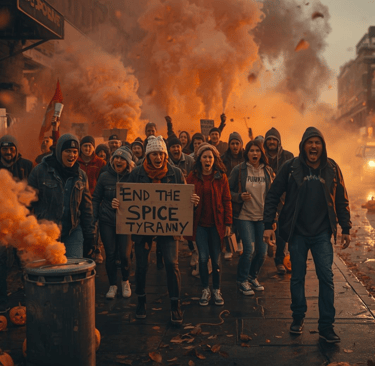 The Pumpkin Spice Campaign (PSC) naturally engages in the standard arsenal of political advocacy, orchestrating boisterous protests in urban streets where crowds chant for flavor liberation and massive rallies in public parks adorned with orange banners demanding an end to seasonal spice tyranny. However, what truly distinguishes us from conventional groups is our boundless ingenuity in raising awareness