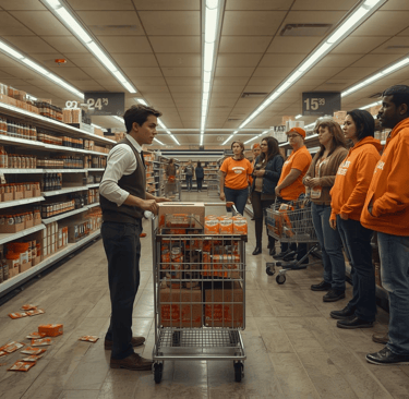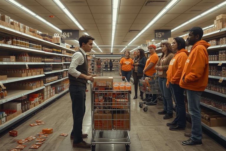 A delightfully unnerving non-violent tactic, deploying teams of activists to subtly shadow grocery store stock clerks during their shifts, weaving through aisles while softly chanting "Spice the shelves now" and slipping unsolicited pumpkin spice packets into carts or hands, building an inescapable aura of surreal advocacy that persists until the clerks, under the weight of the pressure, finally restock the coveted flavors year-round. Inspired by time-honored non-violent shadowing strategies like "haunting officials," where protesters maintain a constant, dignified presence around authority figures to underscore moral grievances without threats or harm.