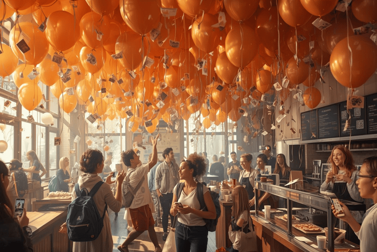 Teams infiltrate non-compliant stores during peak hours with backpacks full of helium-filled orange balloons, each adorned with tiny spice-scented sachets and handwritten demands like "Year-Round Spice or Burst!" that release aromatic hints of PS as they bob chaotically toward ceilings and displays. Activists synchronize their launches via apps for maximum surprise, flooding interiors with a floating armada that tangles in lights, blocks views, and forces staff to pop or collect them—each burst revealing embedded petitions or QR codes linking to our manifesto. This uplifting tactic not only garners viral footage from amused shoppers but transforms mundane retail spaces into festive battlegrounds.